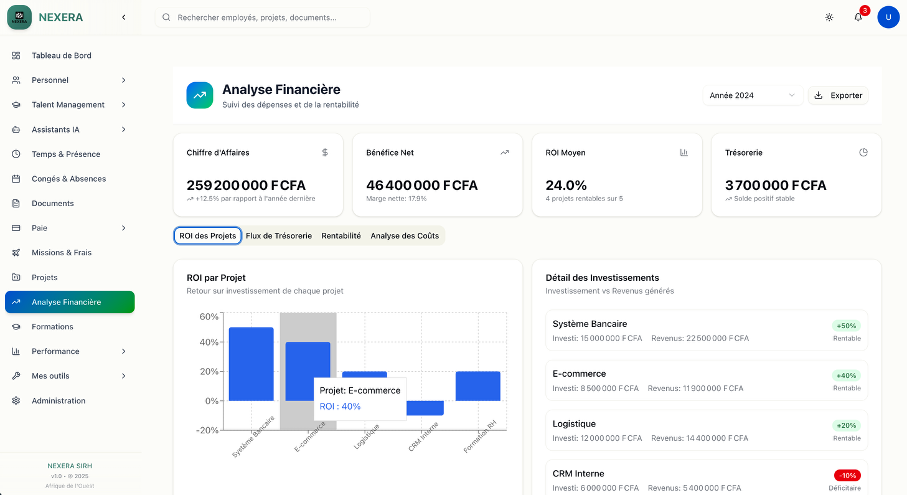 Oui. Nexera intègre des règles fiscales et sociales adaptées aux principaux pays africains (CNPS, CNSS, IPRES, CSS, etc.). Les barèmes sont paramétrables et mis à jour pour garantir une conformité continue.