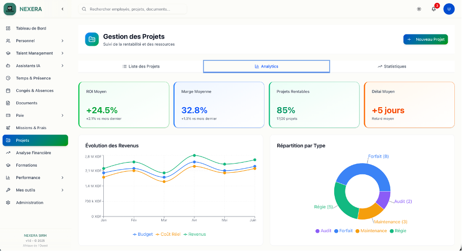 Oui, Nexera est conçu pour évoluer avec votre organisation. Oui. Nexera génère automatiquement des écritures comptables et s’intègre avec les principaux ERP (Sage, Odoo, QuickBooks, ou via API).